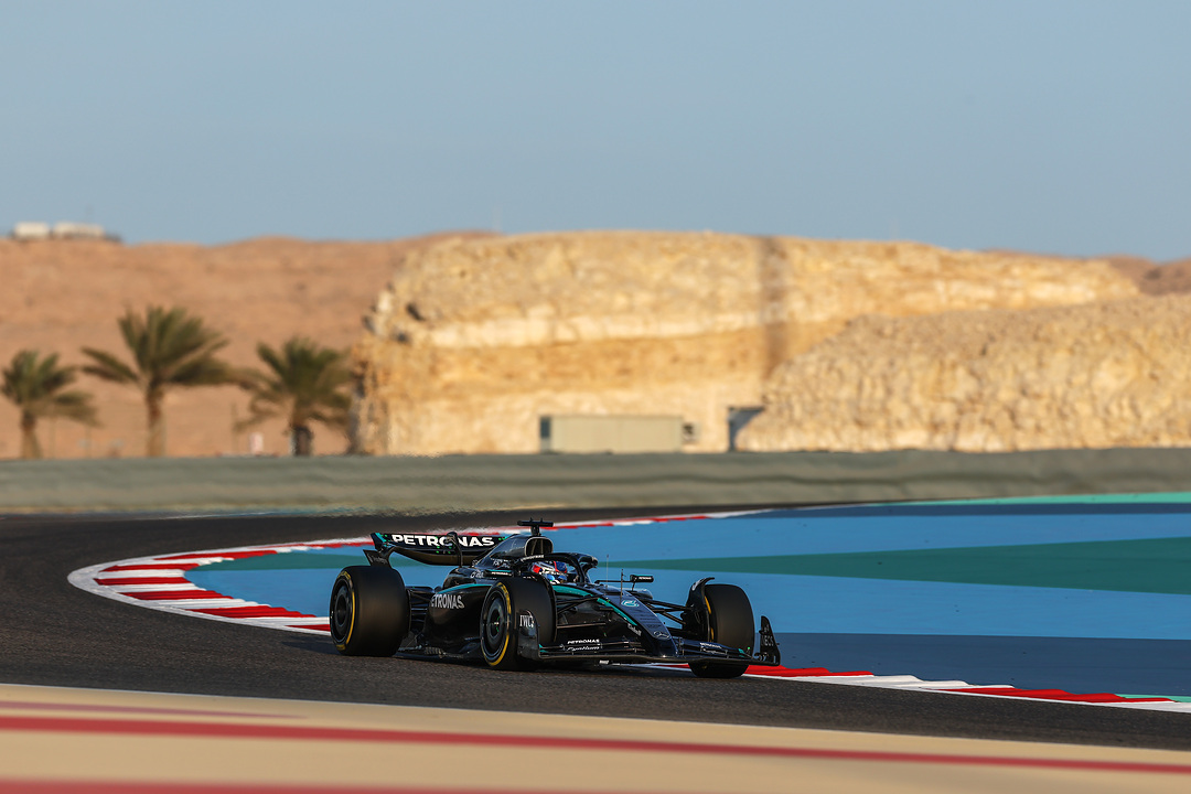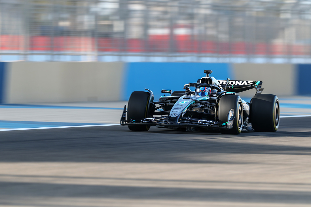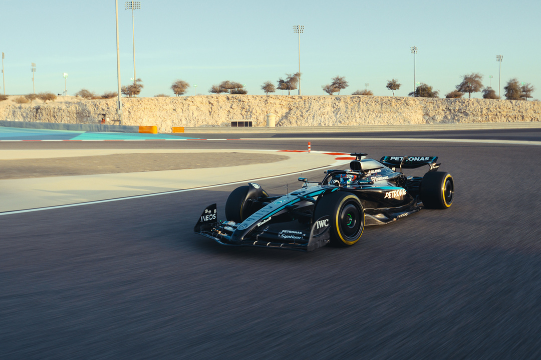 George Russell and Kimi Antonelli completed 200kms of running, as the team performed the first shakedown of the W16 in Bahrain. Here are the first on-track images!
